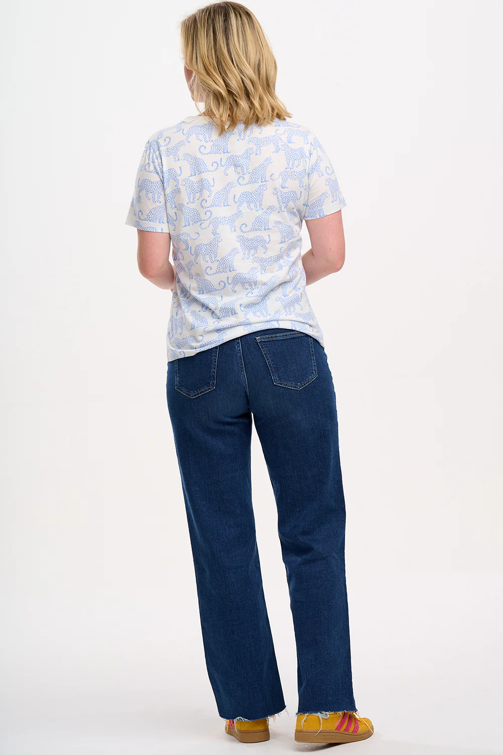 Maggie T-Shirt - Off-White/Blue, Leopard Spots